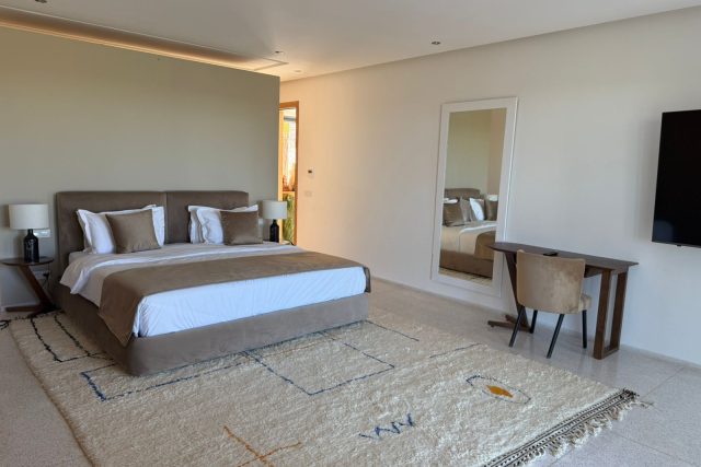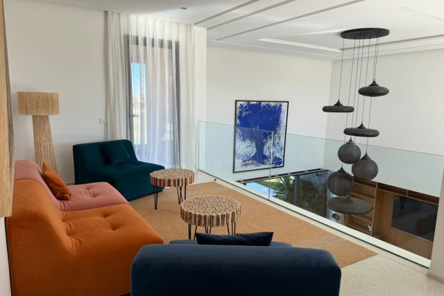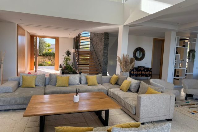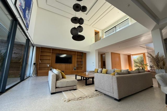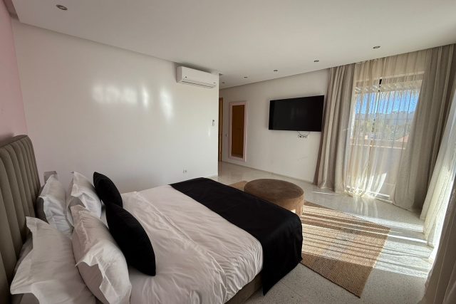 La villa offre des équipements de standing: Panneaux photovoltaïques, double vitrage, Piscine chauffée de 16m par 6, Jardin.