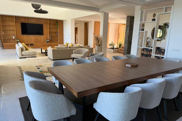 La villa est implantée sur un Terrain de 1 199 m², et 648 m² de superficie habitables, en 3 Niveaux, composée comme suit: