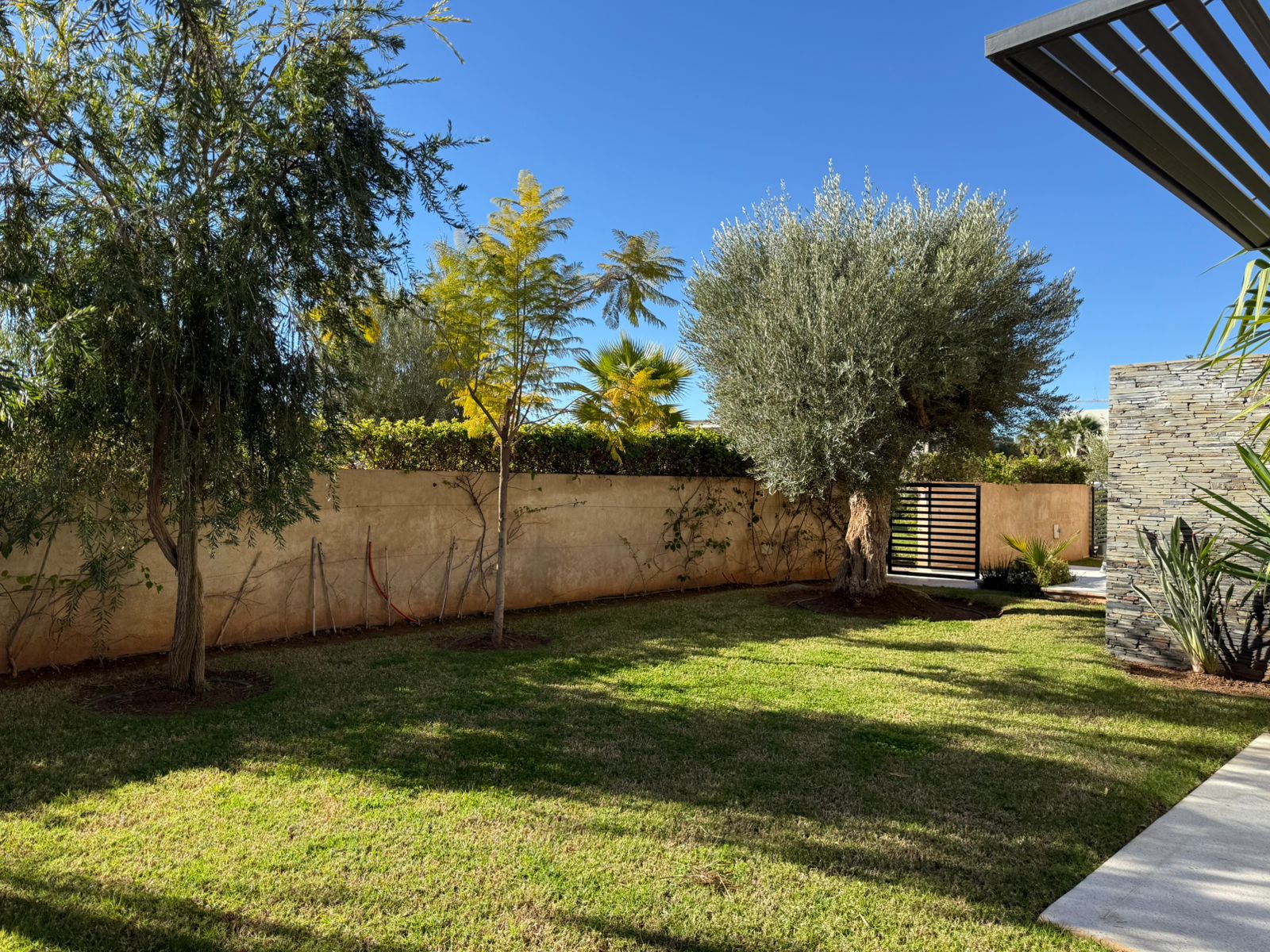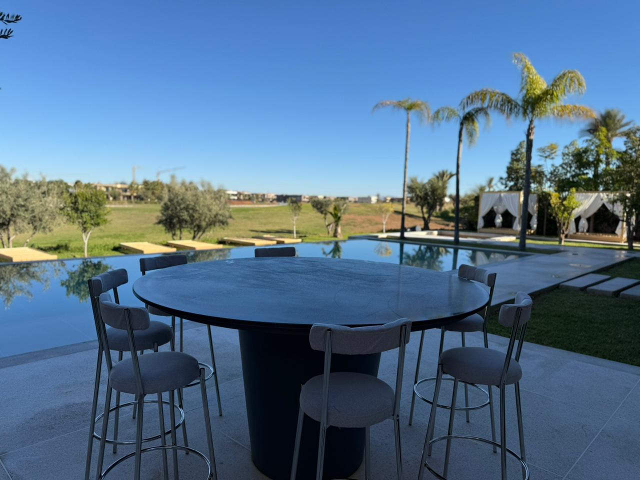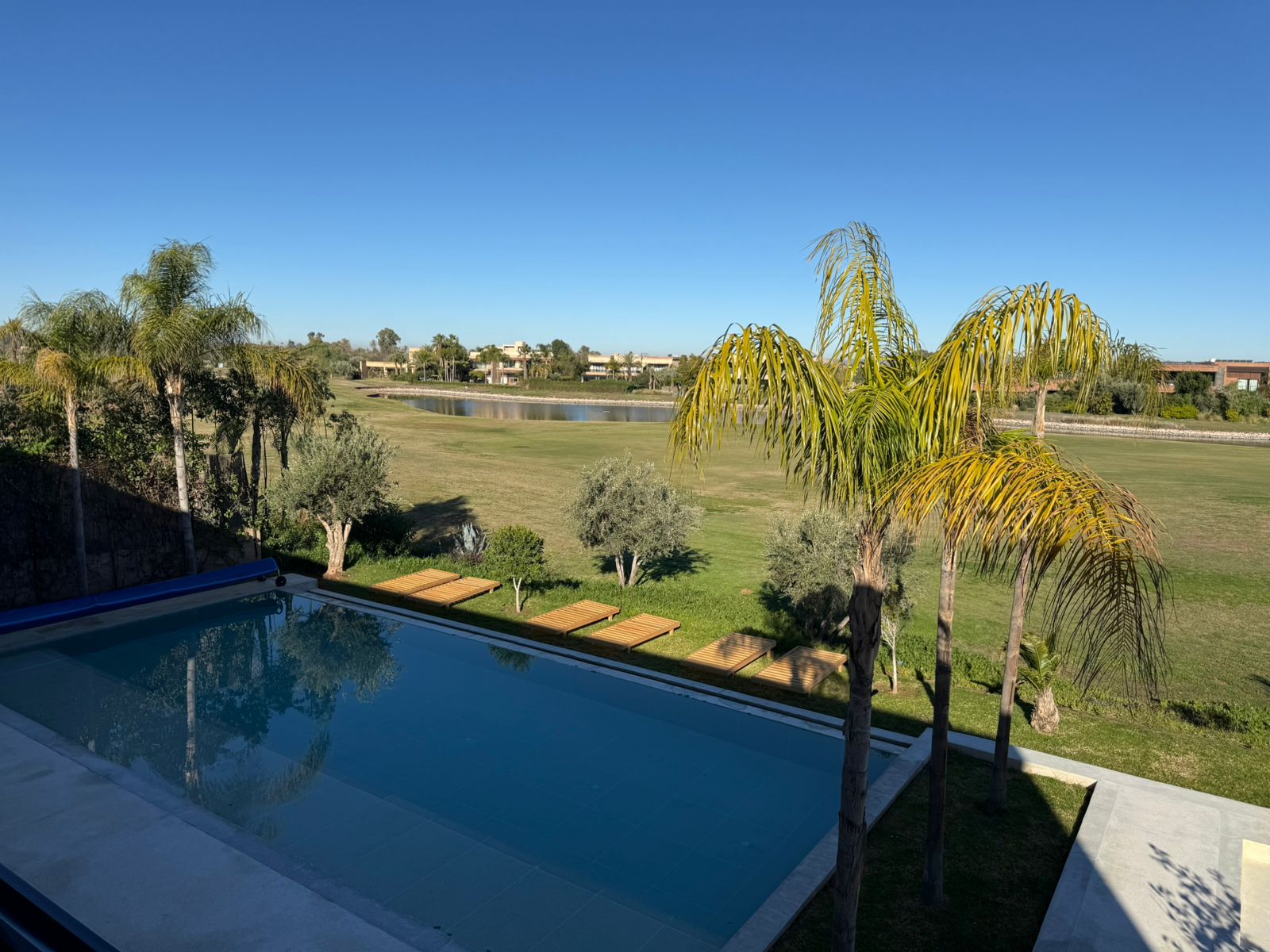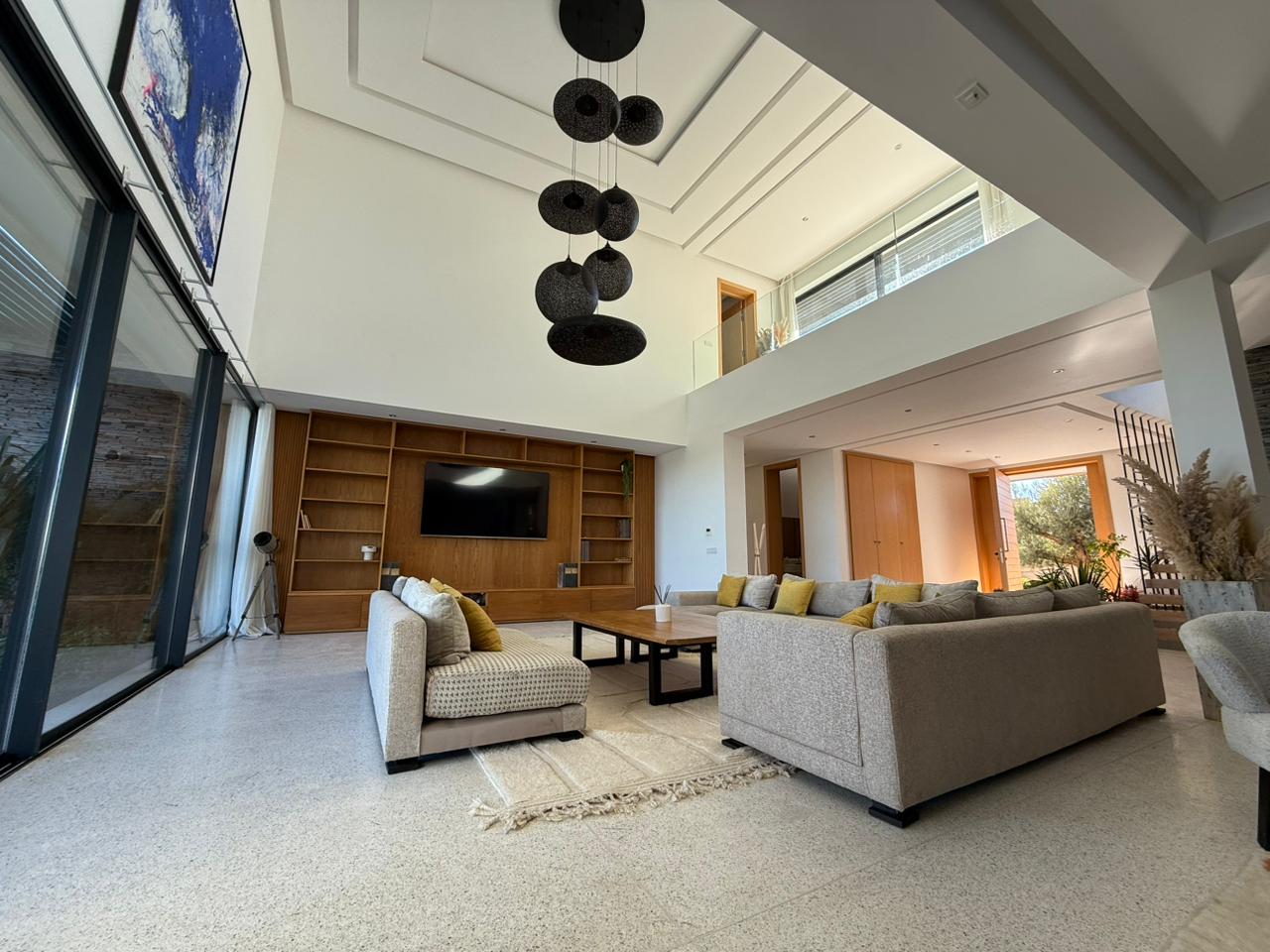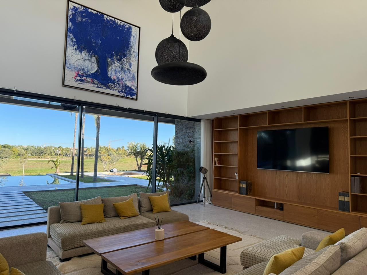 La villa offre des équipements de standing: Panneaux photovoltaïques, double vitrage, Piscine chauffée de 16m par 6, Jardin.