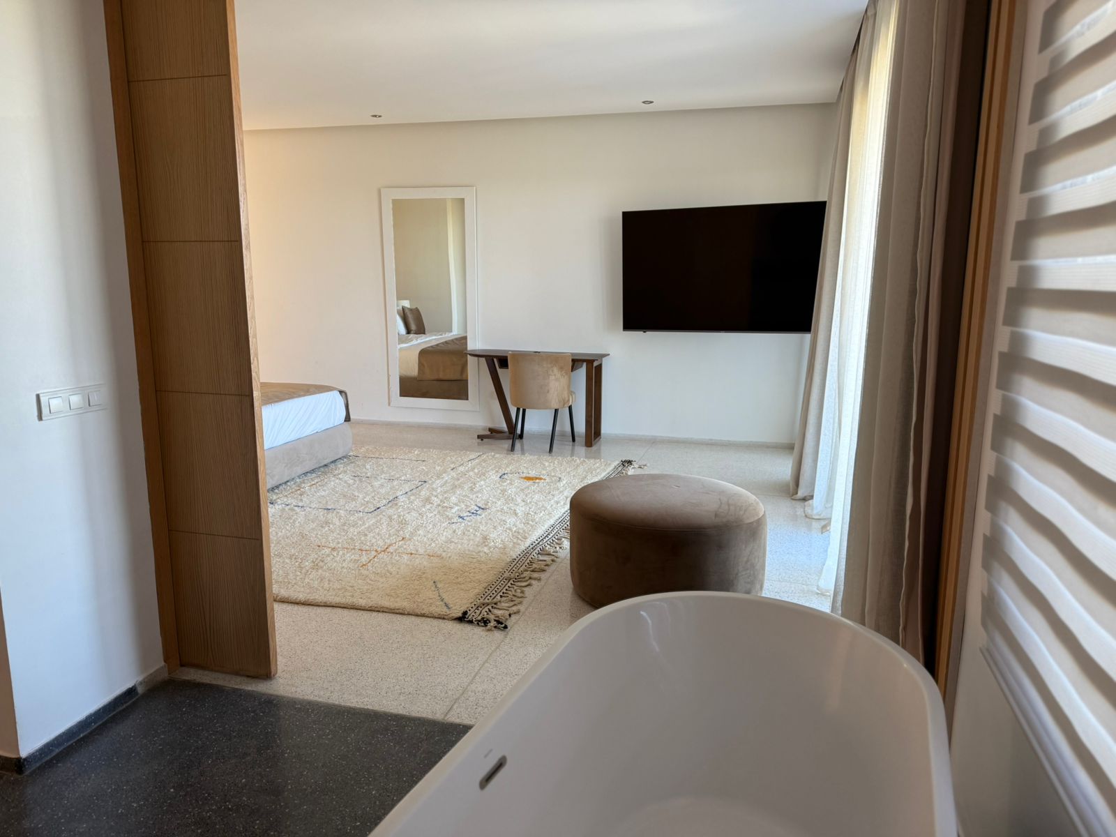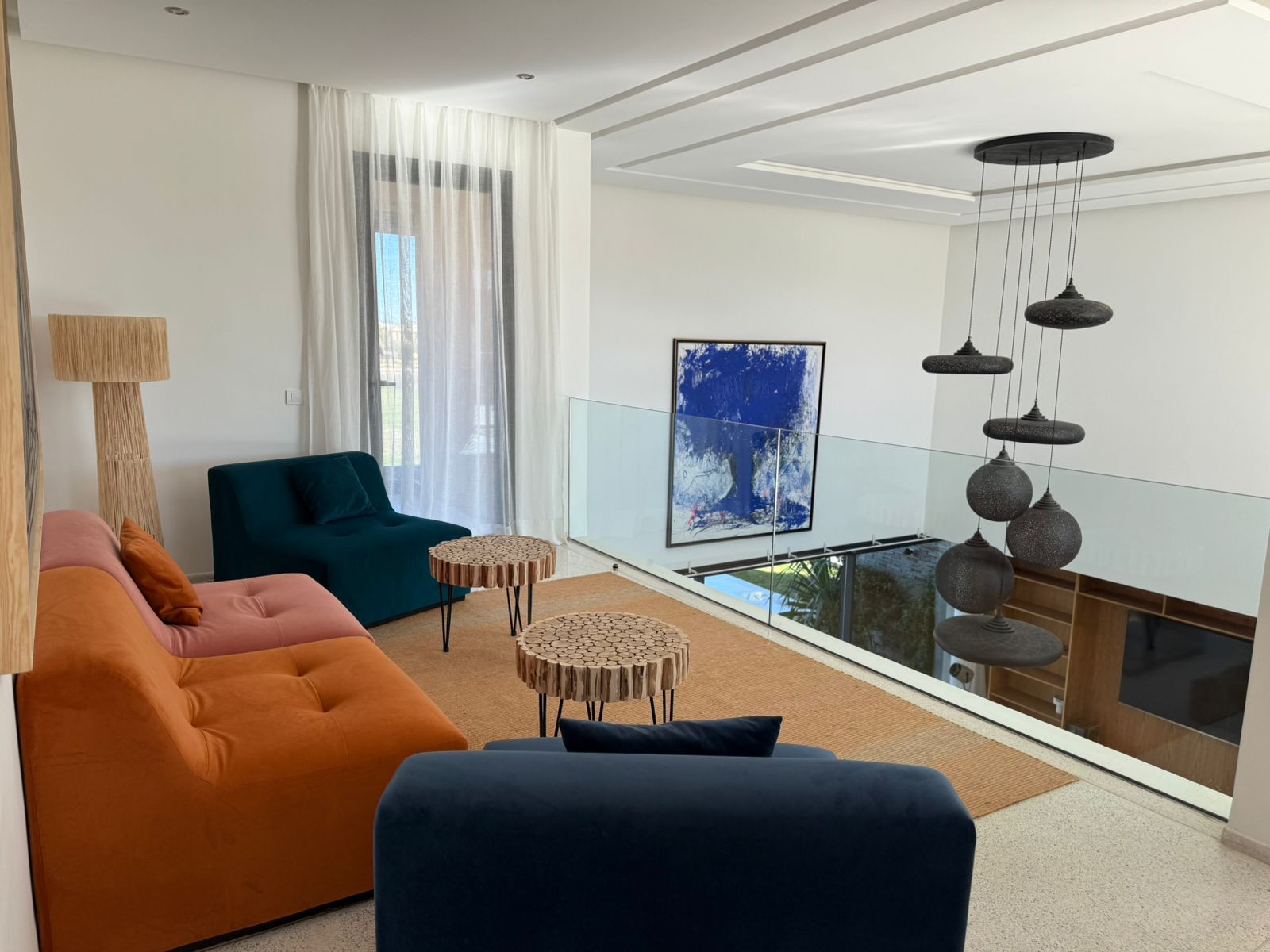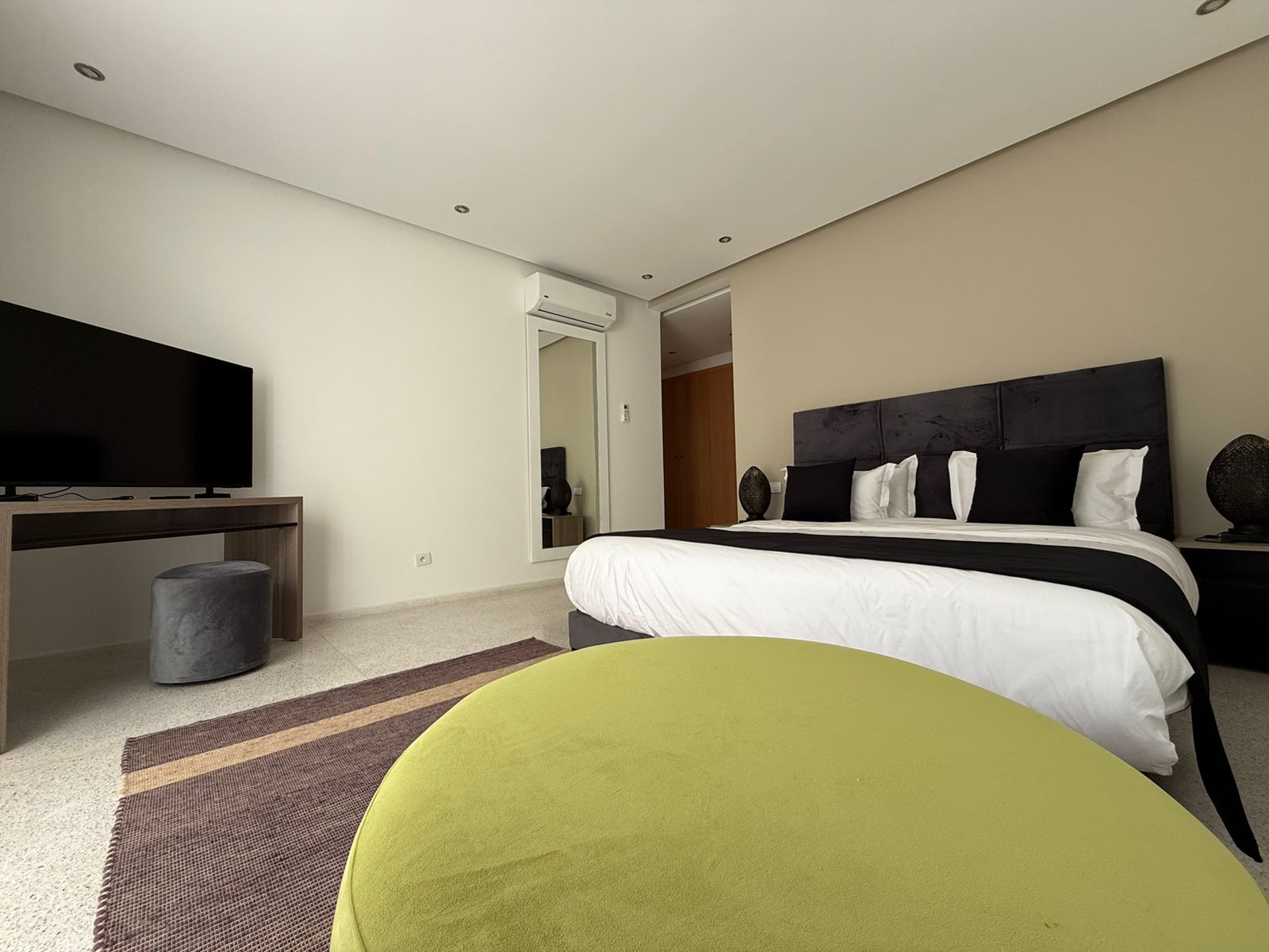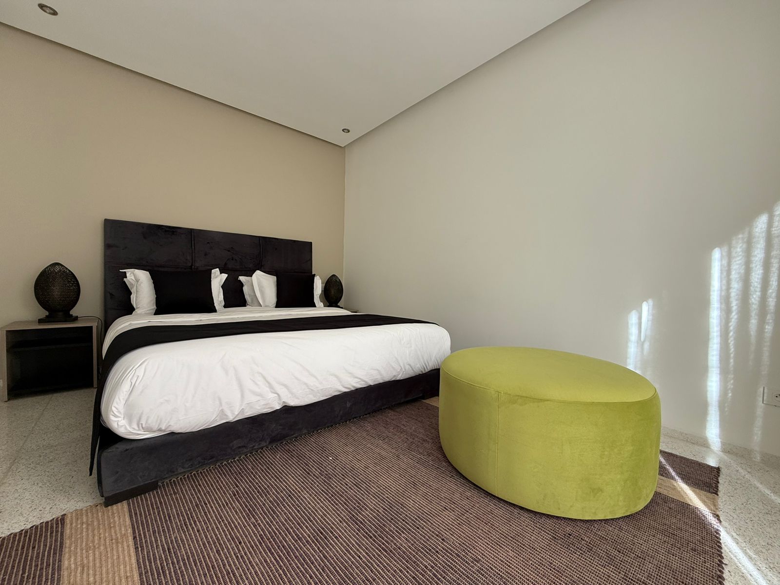 Au sous sol: Deux Chambres, 1 Salle de réunion/ conférence, 1 Hammam.
